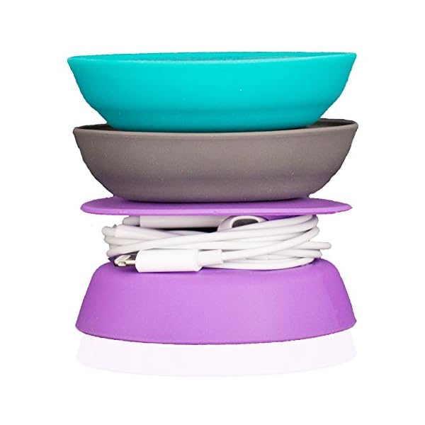 Budley – Tangle-Free Earphone/Earbud Case, Compact Storage System, Silicone (Teal/Gray/Purple, Set of 3)