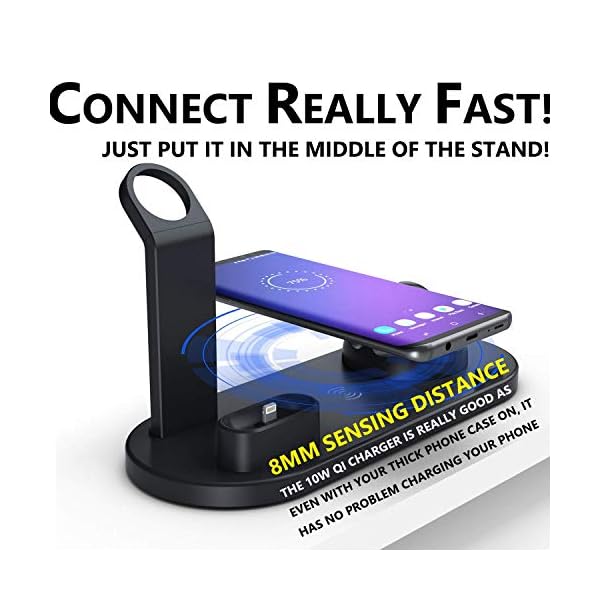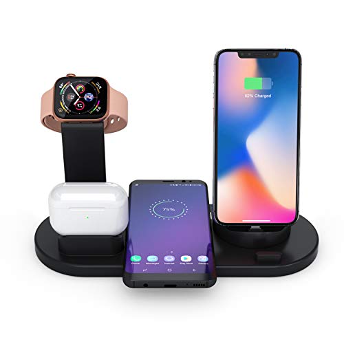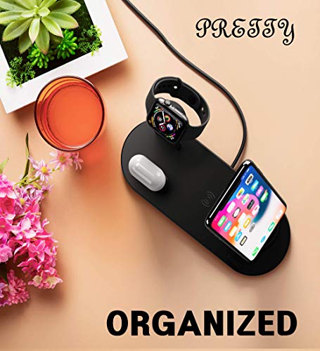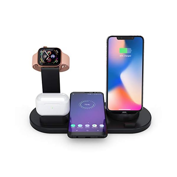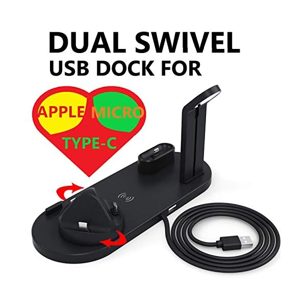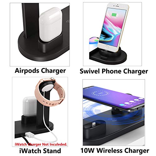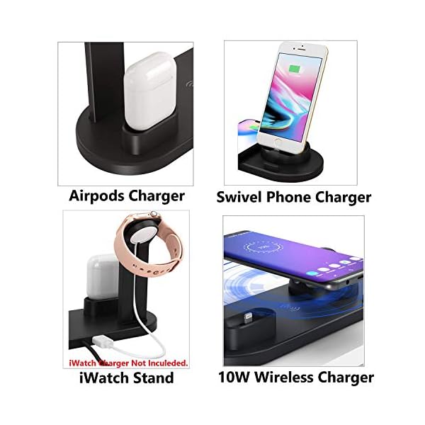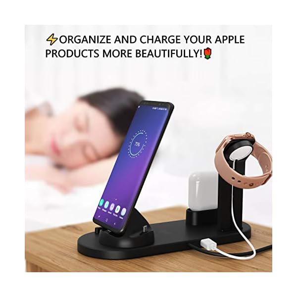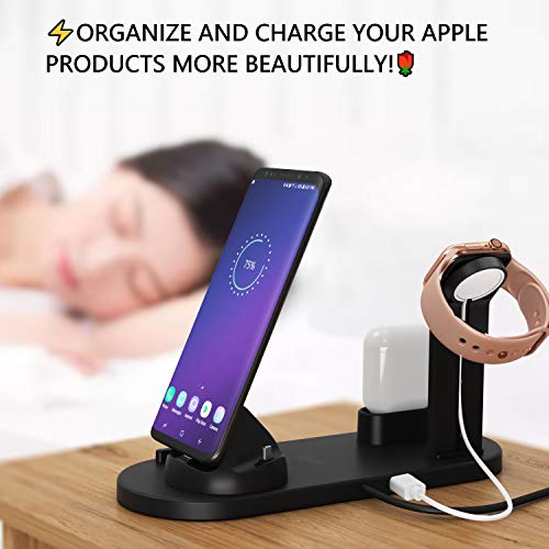 ✅ THE SMART WAY TO CHARGE ALL YOUR APPLE DEVICES AT ONCE! Now you can safely charge your Apple Watch 4, iPhone 11 Pro max, and AirPods Pro 2 at the same time. The best 4-in-1 multi-functional charging dock! Easily charge and display your smart devices with 360° degree rotation.(Requires original Apple Watch charger and Quick Charge 3.0 charger for fast charging.)
