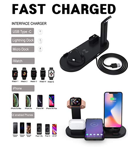 1 x All in One Charging Stand builtin Qi-Certified 10W Wireless Charger & Apple Watch Stand & Airpods Dock & 3-Type Mobile Phone Dock & 1 USB port for iwatch